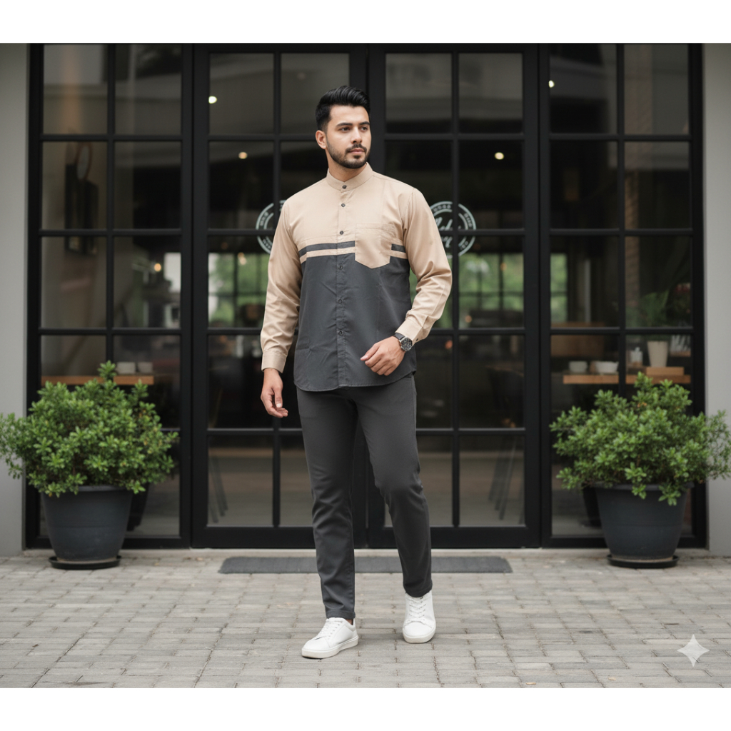 Ashsiddiq_store Kemeja Koko Pria Lengan Panjang Katun Premium Motif Etnik Modern Size M-XXL