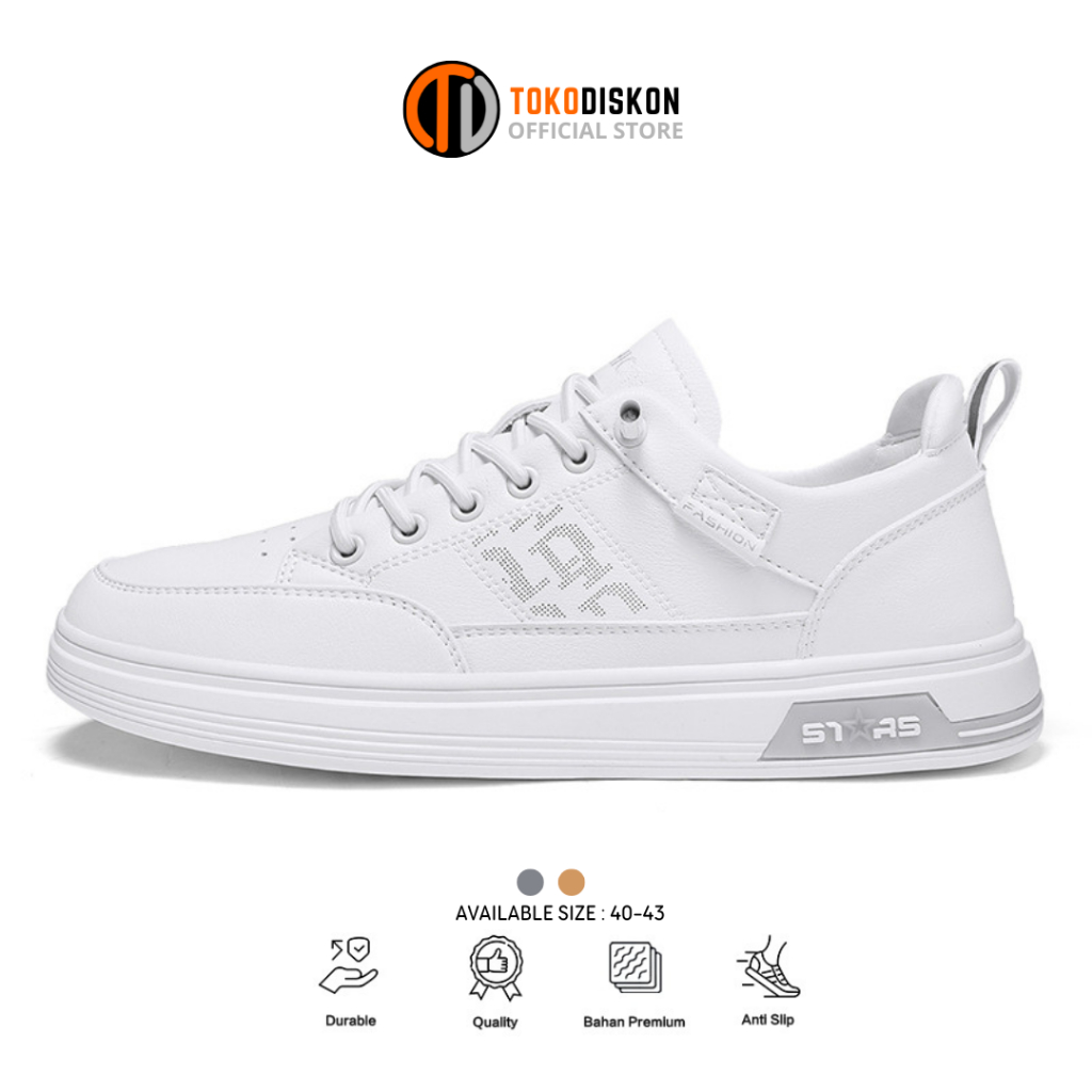 𝗧𝗢𝗞𝗢𝗗𝗜𝗦𝗞𝗢𝗡 Sepatu Sneakers putih Pria Model White Series Sepatu jalan kasual slip on star