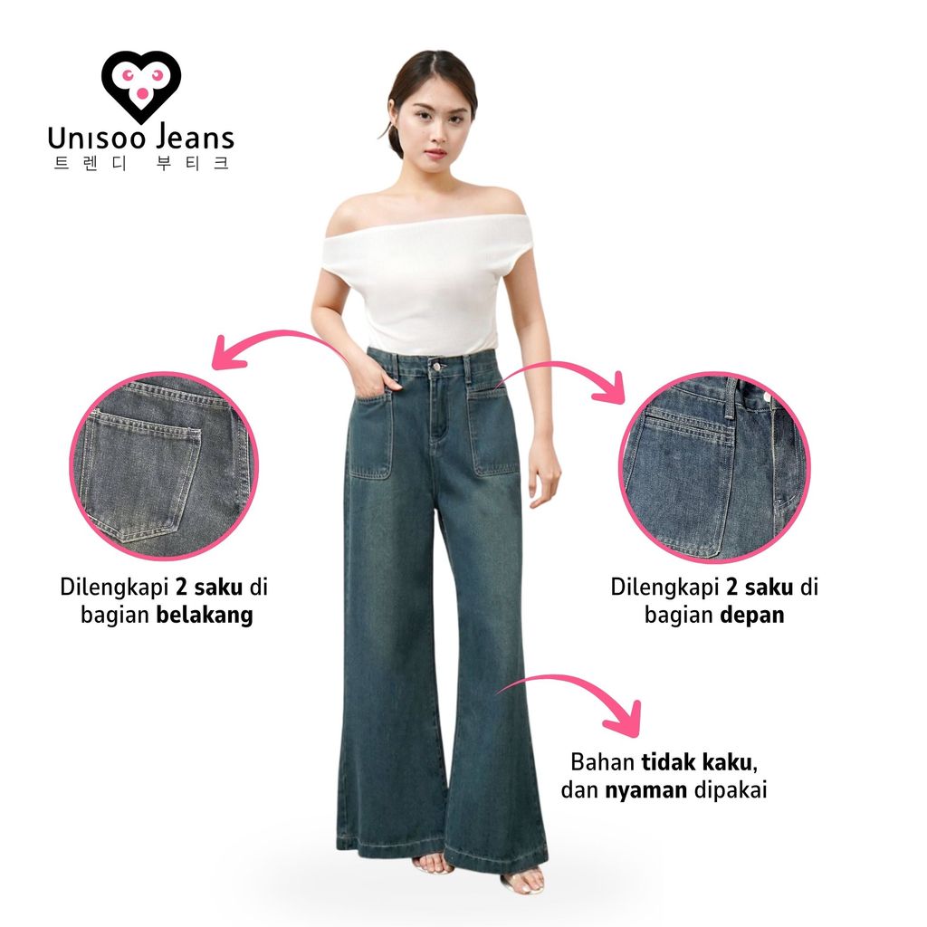 Unisoo Jeans - Ck8008 Celana Jeans Highwaist | Celana Jeans Kulot | Jeans Wanita Highwaist | Loose Jeans | Baggy Jeans