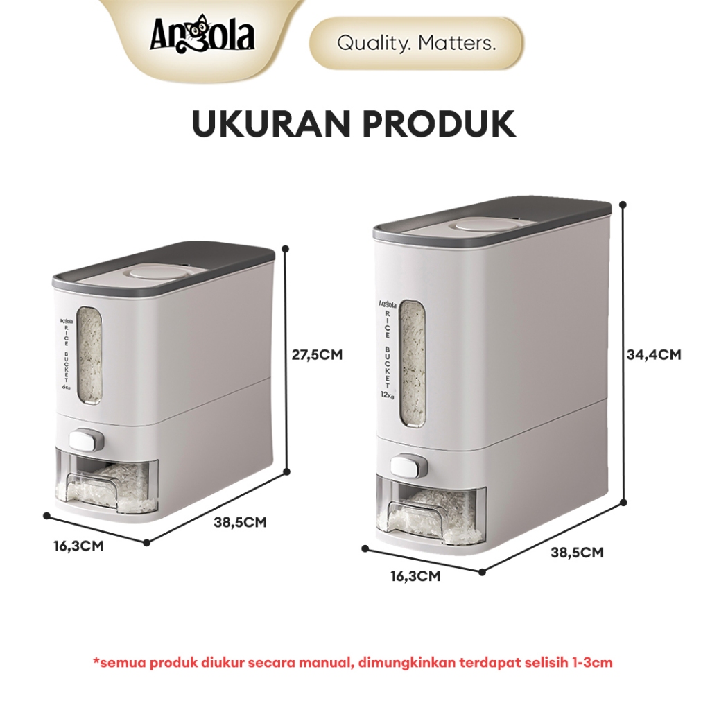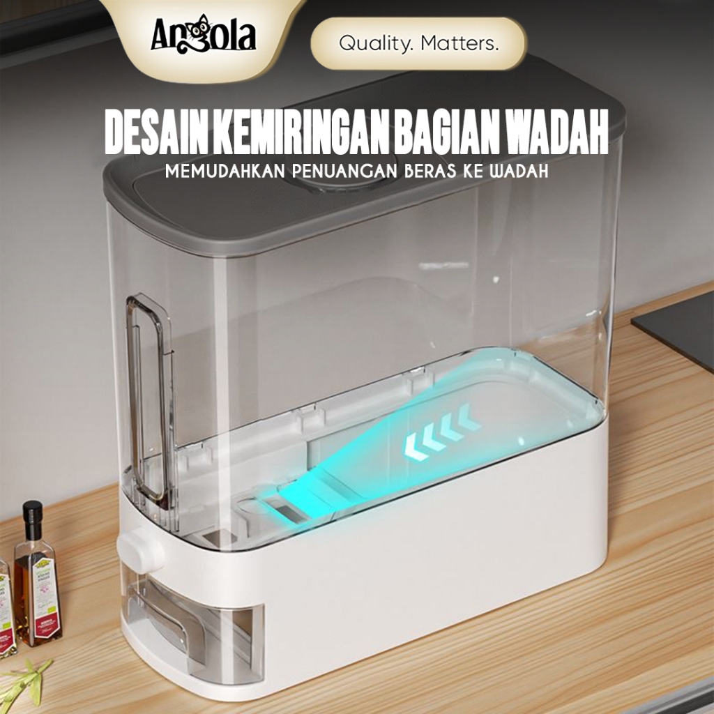 ANGOLA Dispenser Beras Otomatis 6-12KG E13-E14 Tempat Penyimpanan Beras Food Grade