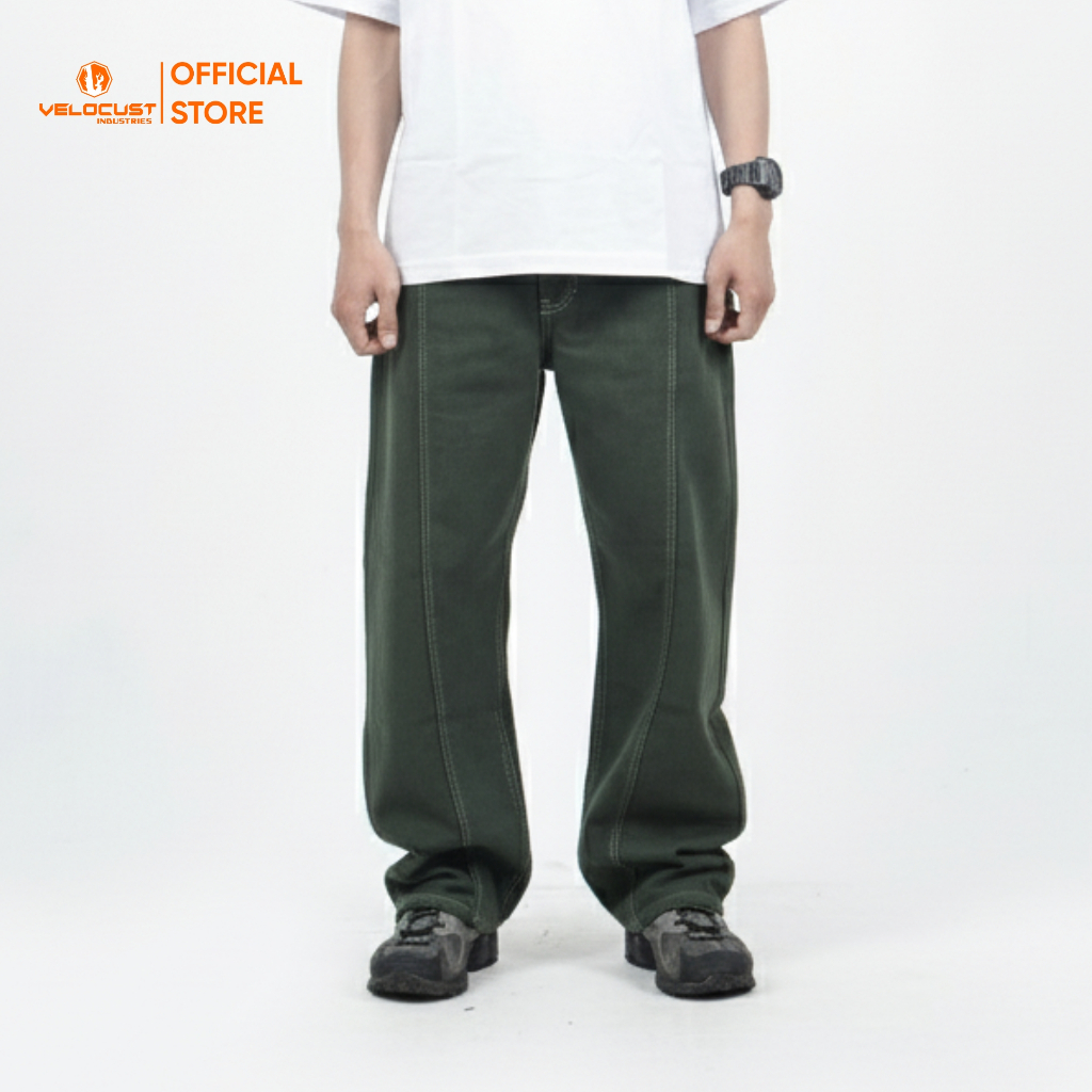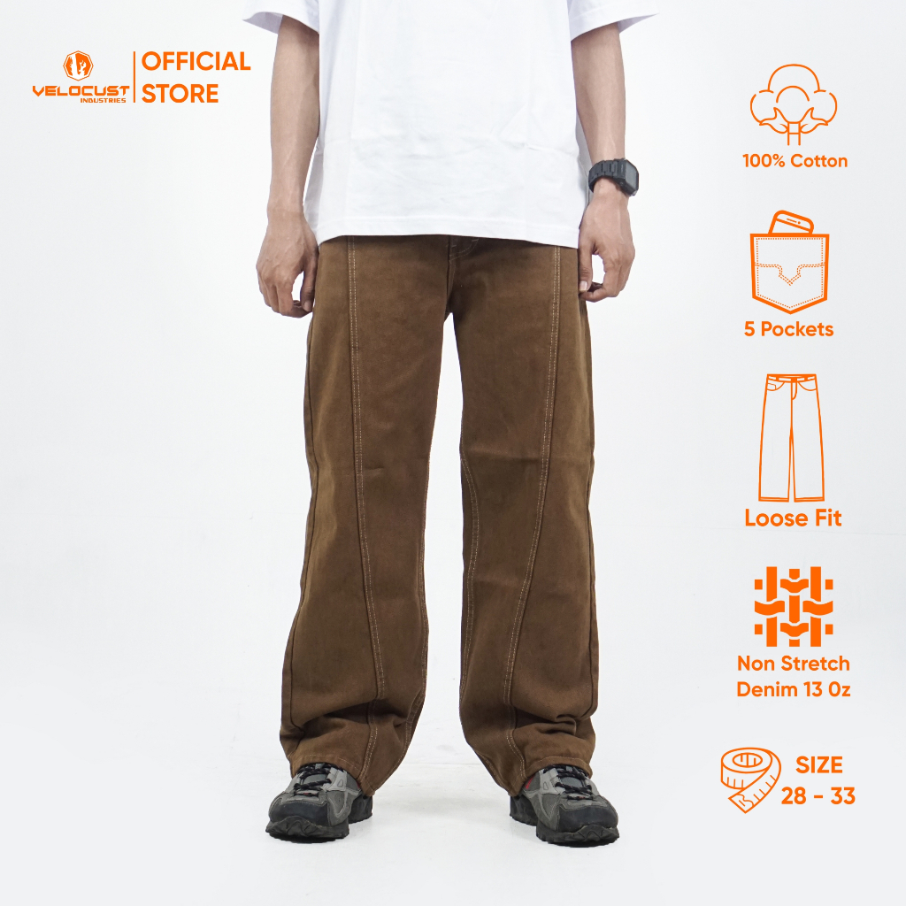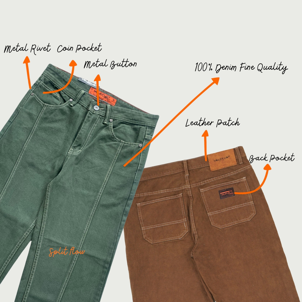 Velocust - Celana Panjang Jeans Pecah Pola Split Flow Baggy Barrel Denim Earth Tone
