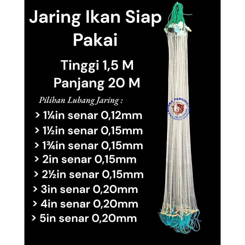 Jaring ikan siap pakai tinggi 1,5m panjang 20m bandul lanting tanah bahan seperti genteng cocok untuk disungai penangkap ikan
