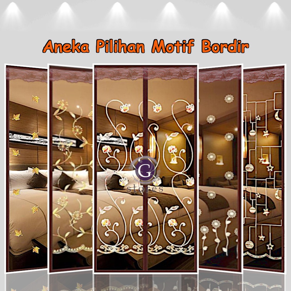 Tirai Magnet Premium Mesh Anti Nyamuk Gorden Magnet Anti Nyamuk Serangga Motif Bordir Embroidery