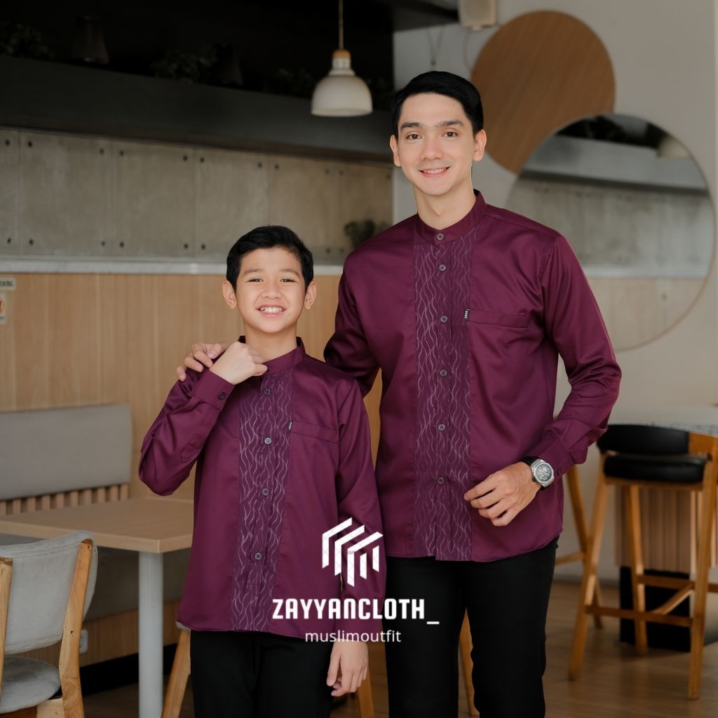 Baju Koko Couple Ayah dan Anak Lengan Panjang Bahan Toyobo Premium Kombinasi Embos