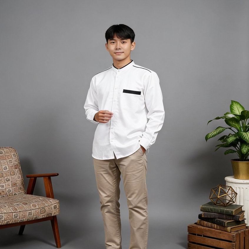 Kemko Pria Premium Lengan Panjang Elegan Fashion Muslim Kemeja Koko Modern Bahan Adem Jahitan Rapi