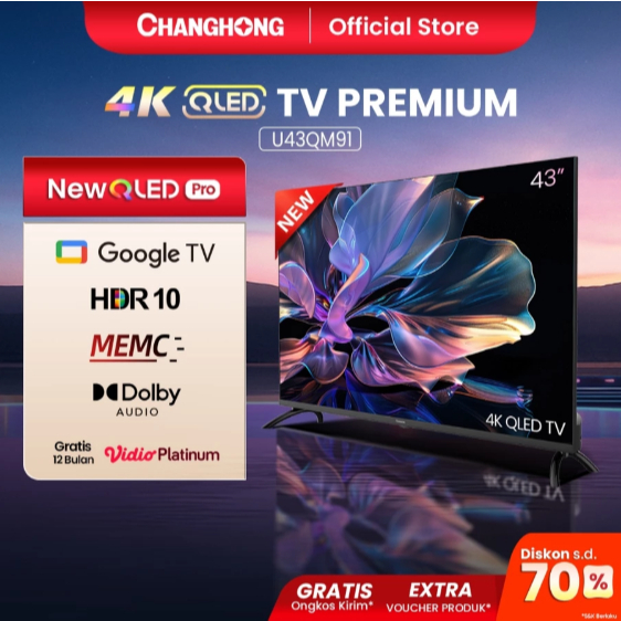 Changhong QLED TV 4K 43 inch Google Smart QLED PRO Digital TV Dolby Audio DBX-TV Google Play USB
