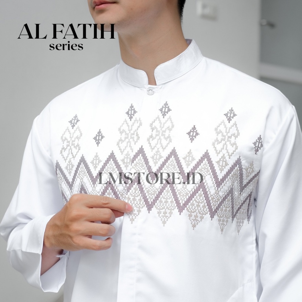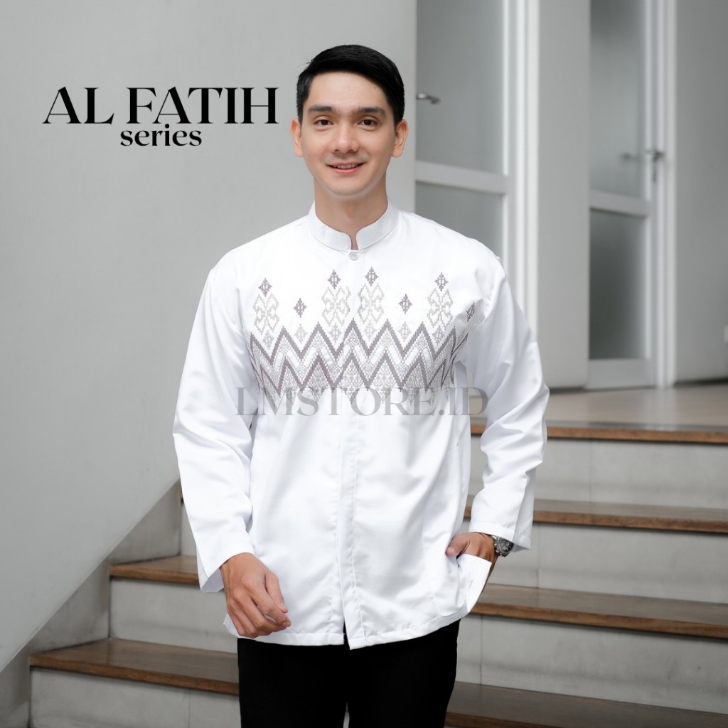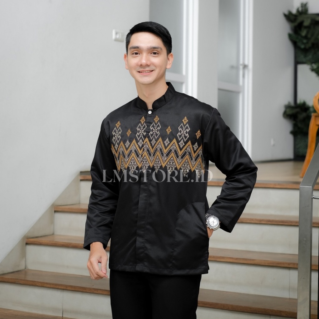 Baju Koko Pria Lengan Panjang Bordir Motif Toyobo Grade A Premium Warna Putih Hitam Abu Coksu Tebal Berkualitas