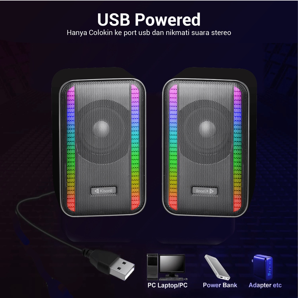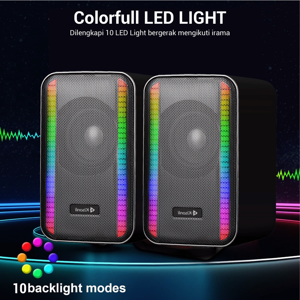 KISONLI Speaker Laptop / PC / Gaming X22 Super Bass RGB Rhythm Light - Garansi 1 Tahun