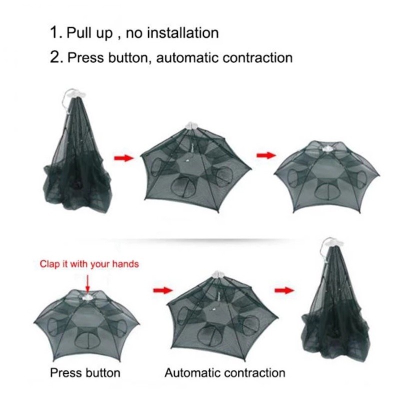 10pcs grosir Perangkap Bubu Payung 6 Lubang Alat Jaring Pancing Jala Ikan Udang Kepiting Lele Lobster Sungai Laut Danau Fish Trap Net6
