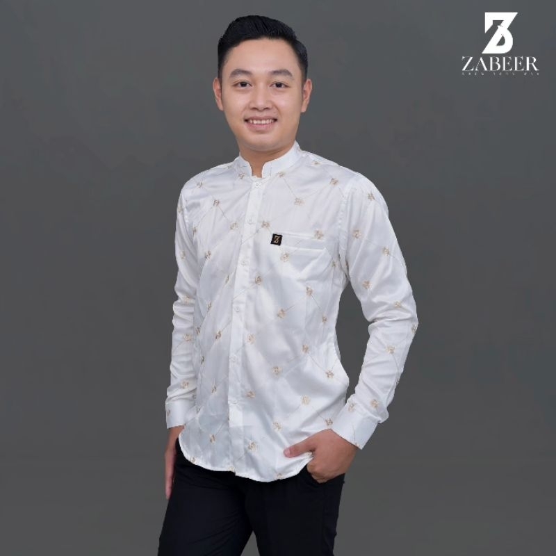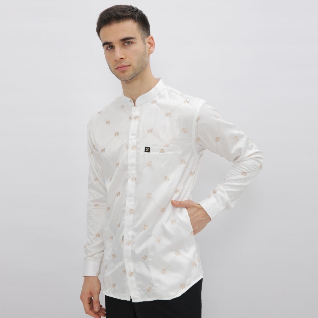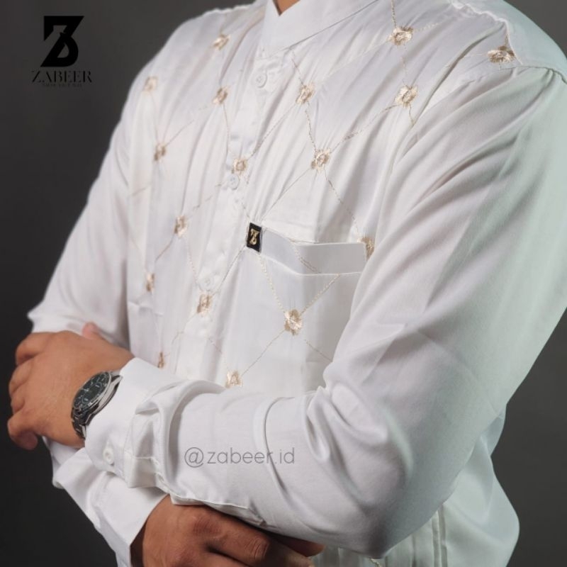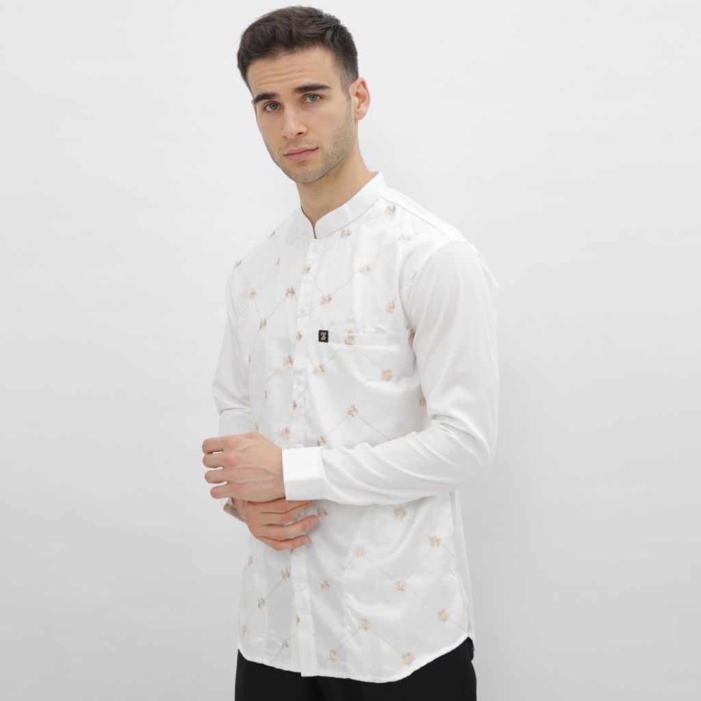 Kemeja Koko Pria Full Bordir/Brokat Style Slimfit.