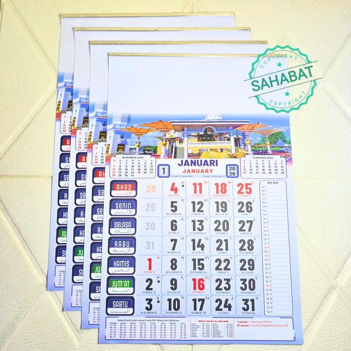 KALENDER KERJA UKURAN MEDIUM 32 X 48 GAMBAR MASJID KERTAS HVS WARNA TAHUN 2026 - MASJID DVD