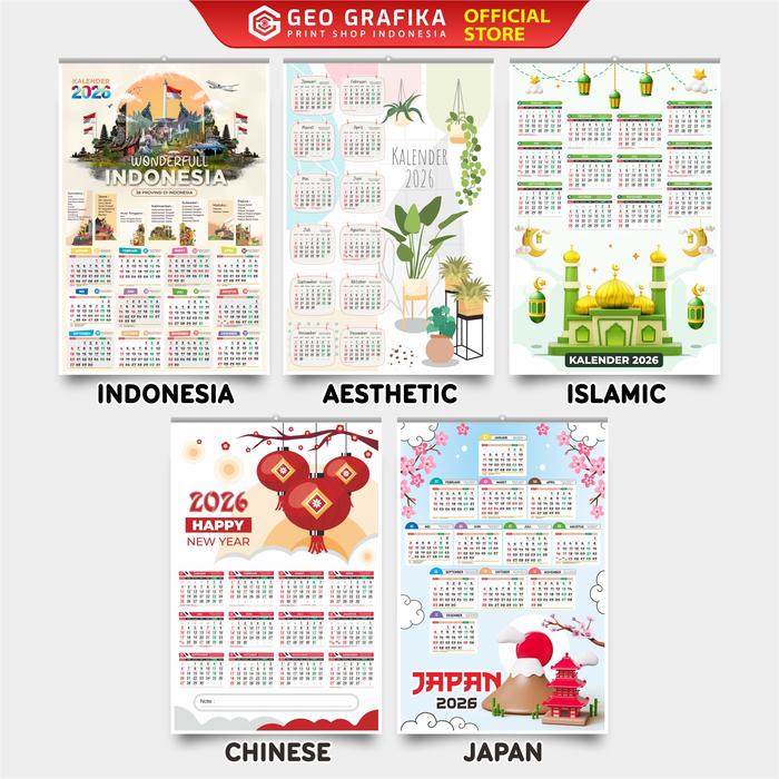 Kalender Dinding 2026 Aesthetic 1 Halaman - Geo Grafika - Indonesia