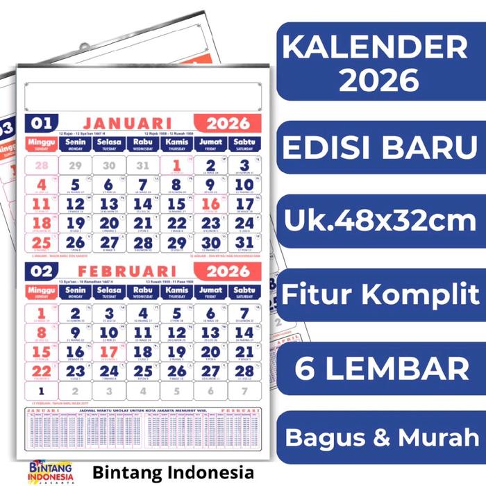 TERBARU KALENDER DINDING 2026 DWI BULAN 6 LEMBAR MURAH Dengan Desain Bulanan Dan Tanggal Terupdate