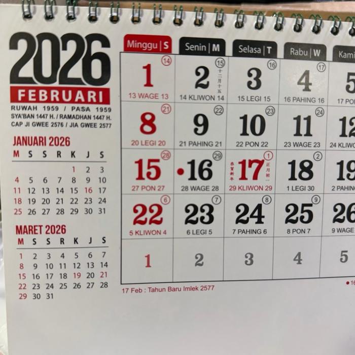 Kalender Meja Angka Besar NS Tahun 2026 Lanscape Potret - KM- ANGKA LANSCAPE NS