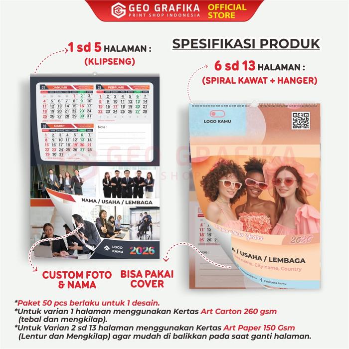 50 Pcs Cetak Kalender Dinding 2026 Custom - Geo Grafika - 1 Hal
