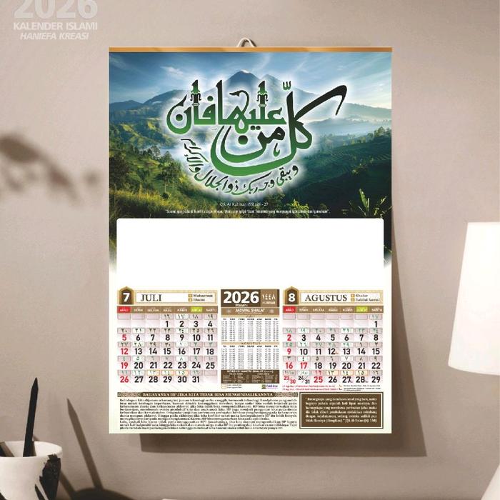 Kalender Islam Tahun 2026 Gambar Kaligrafi dan Masjid | Kalender Hijriyah 1447 ada jadwal sholat dan puasa Sunnah
