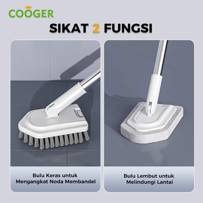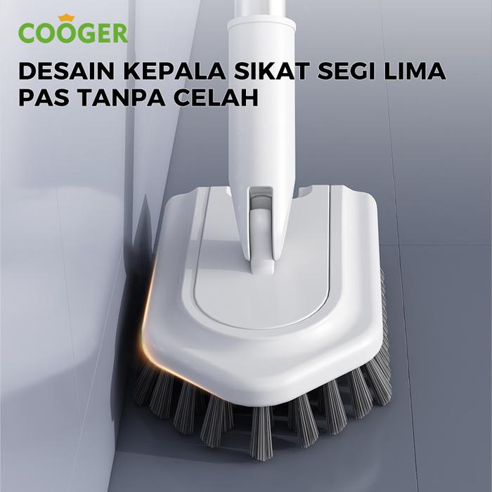 COOGER Sikat WC Kamar Mandi 2IN1 Sikat Lantai Kamar Mandi Garasi Kaca Jendela Gagang Panjang Stainless Steel