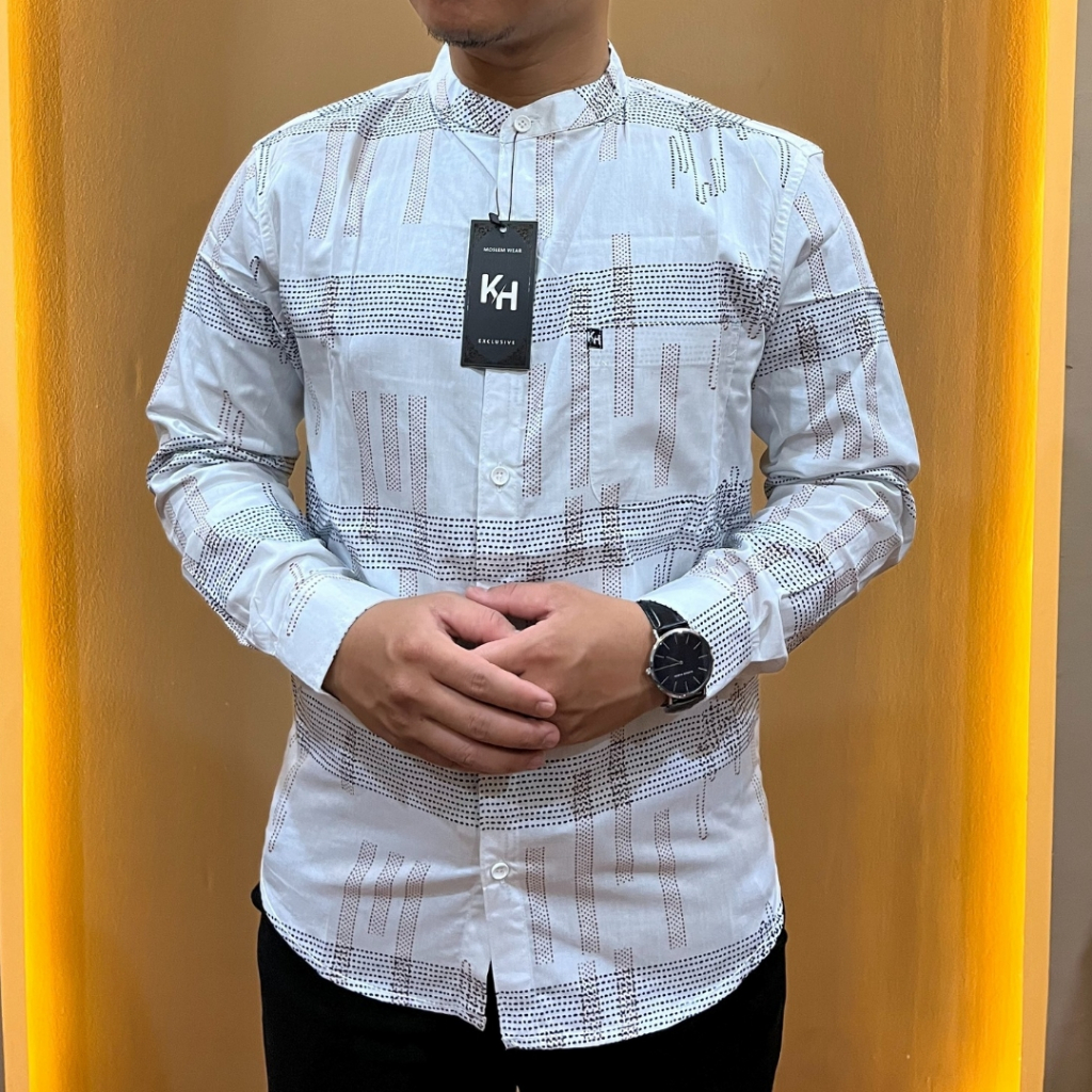 [ KH ] Kemeja Pria Dewasa Lengan Panjang Kerah Sanghai Motif Grafis slimfit Premium