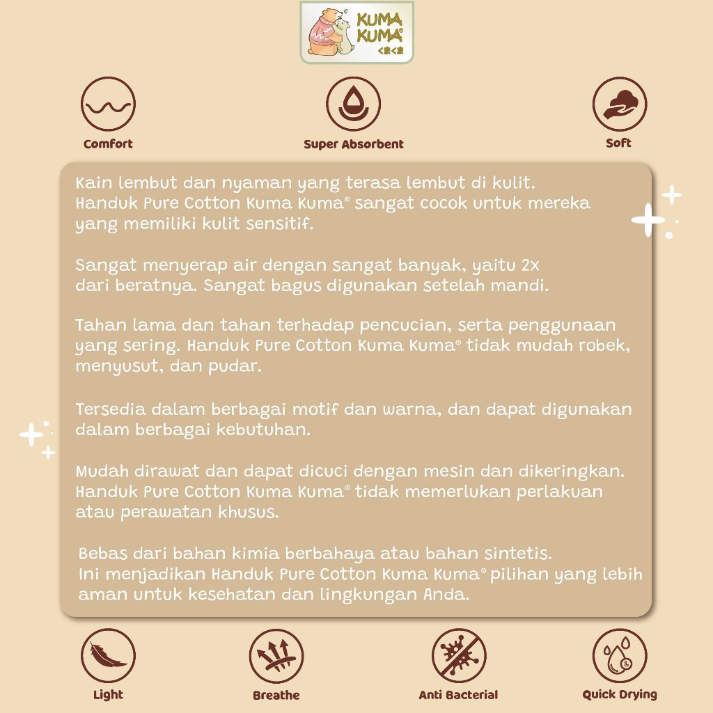 Kuma Kuma Pure Cotton Handuk Mandi Bayi Premium / Baby Towel Kuma Kuma