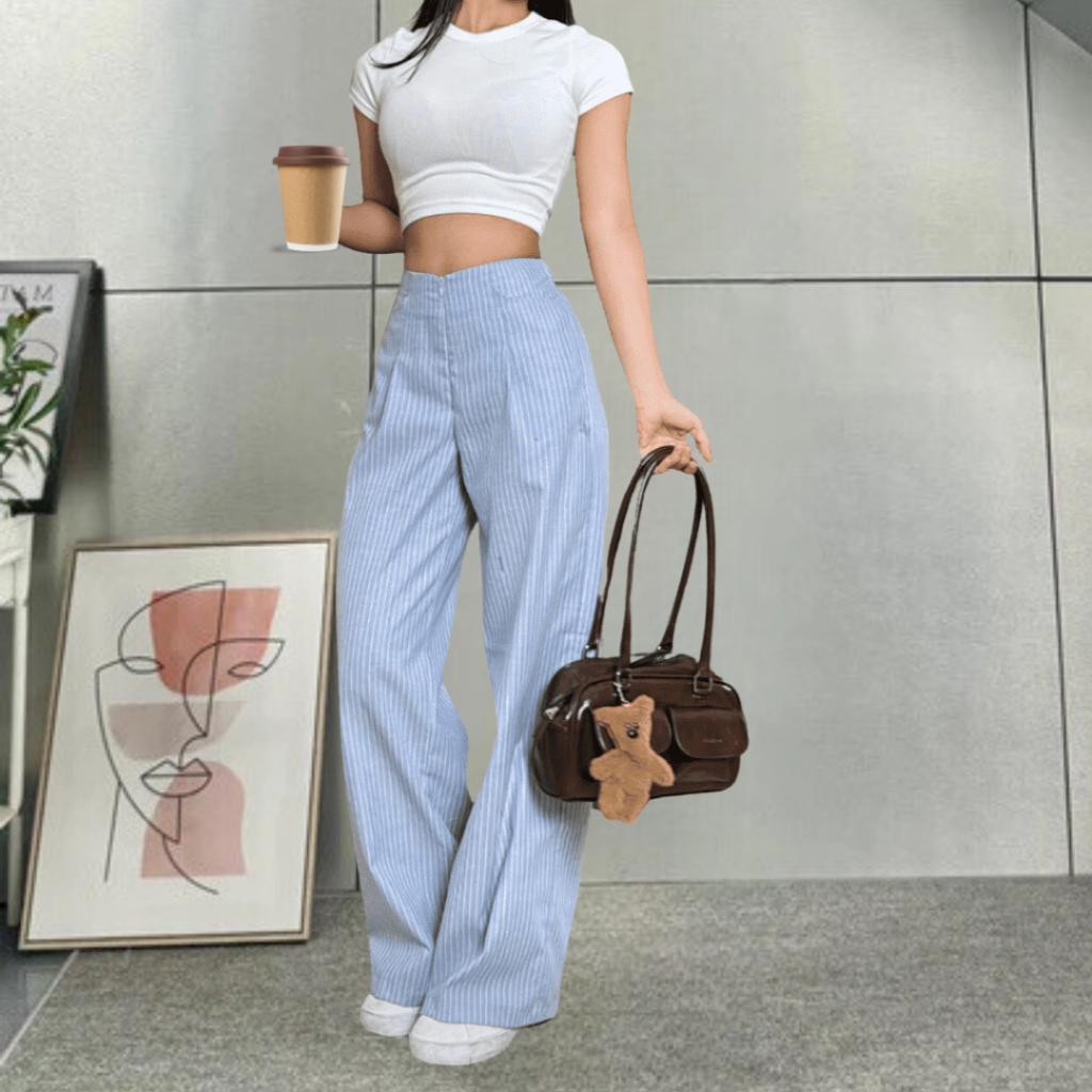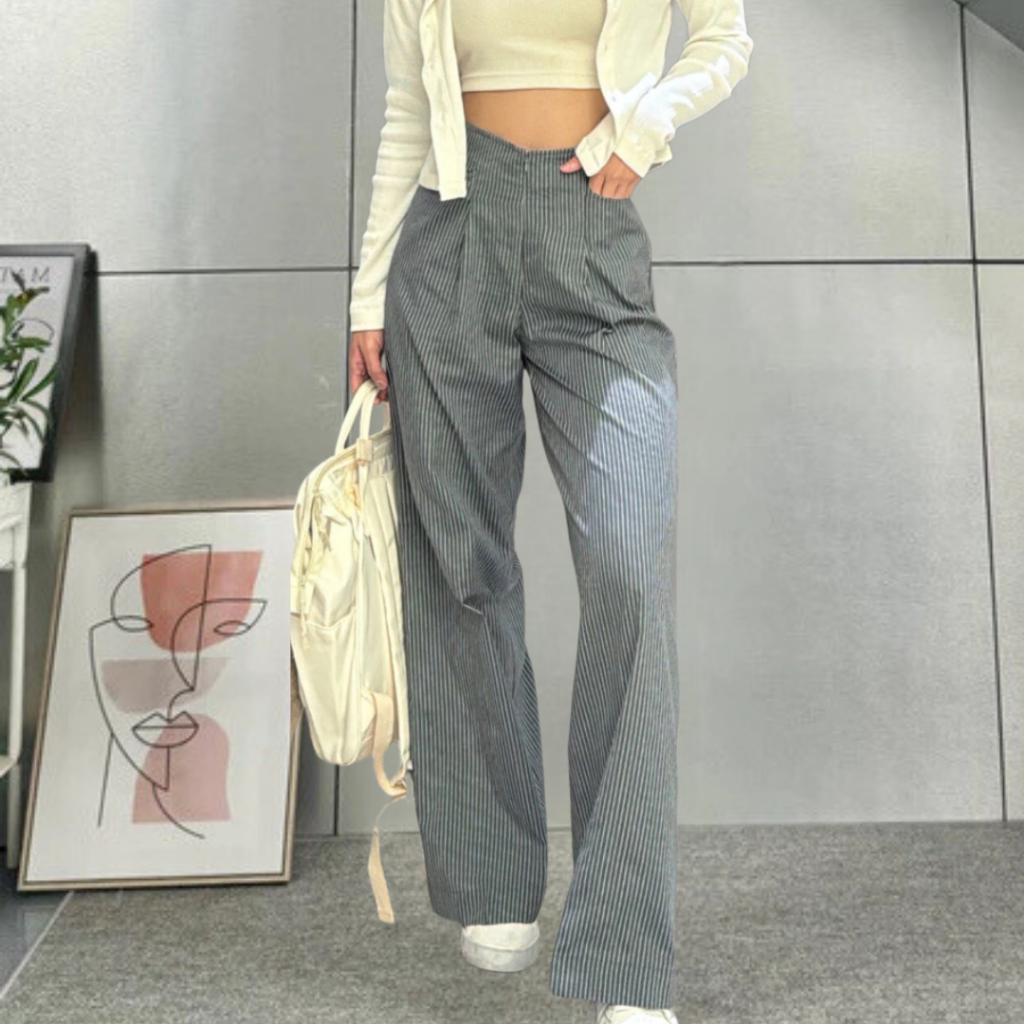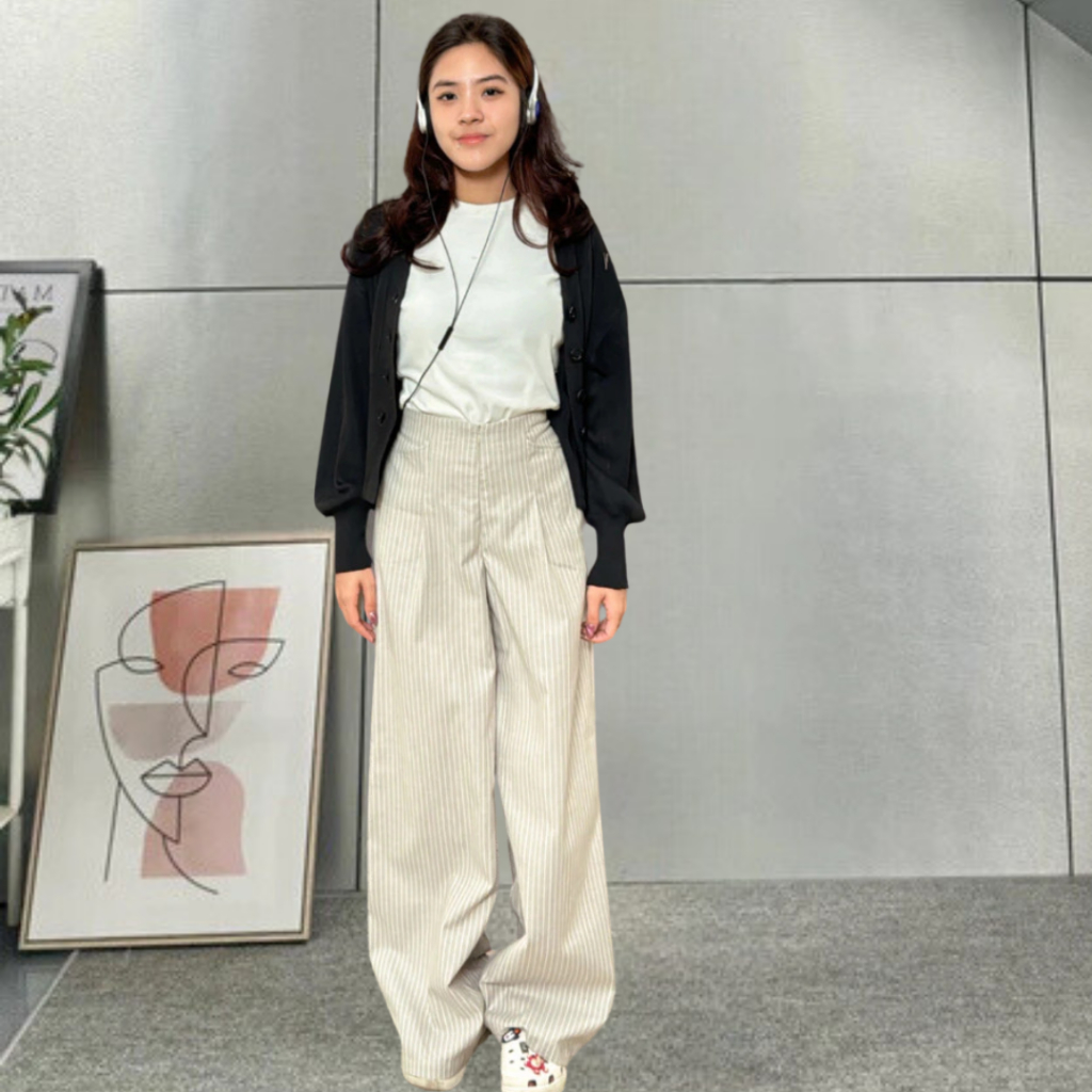 TERLARIS Pants Celana Panjang terbaru Wanita dewasa kerja Kantor Kuliah reguler formal Motif Garis salur Kulot resleting saku depan Pinstripe