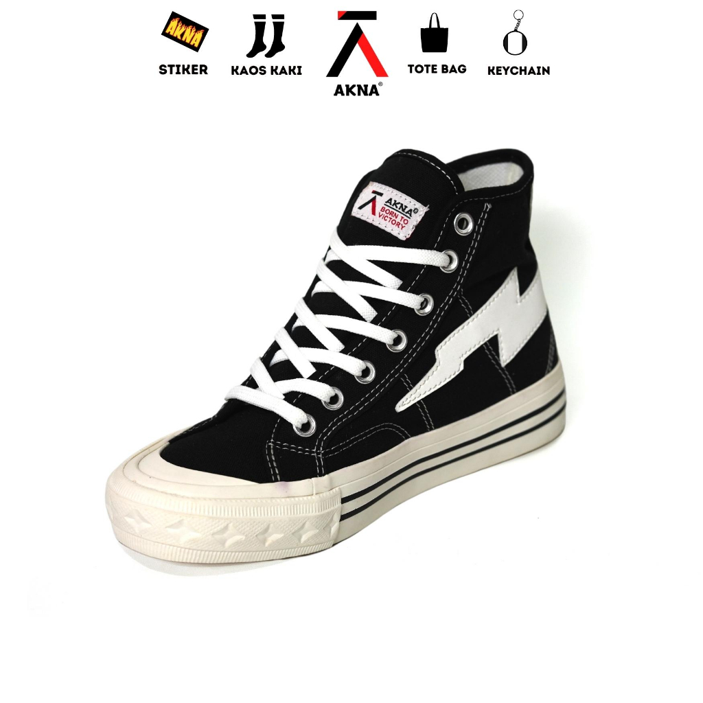 AKNA - Sepatu Aksara High Black White Pria Wanita