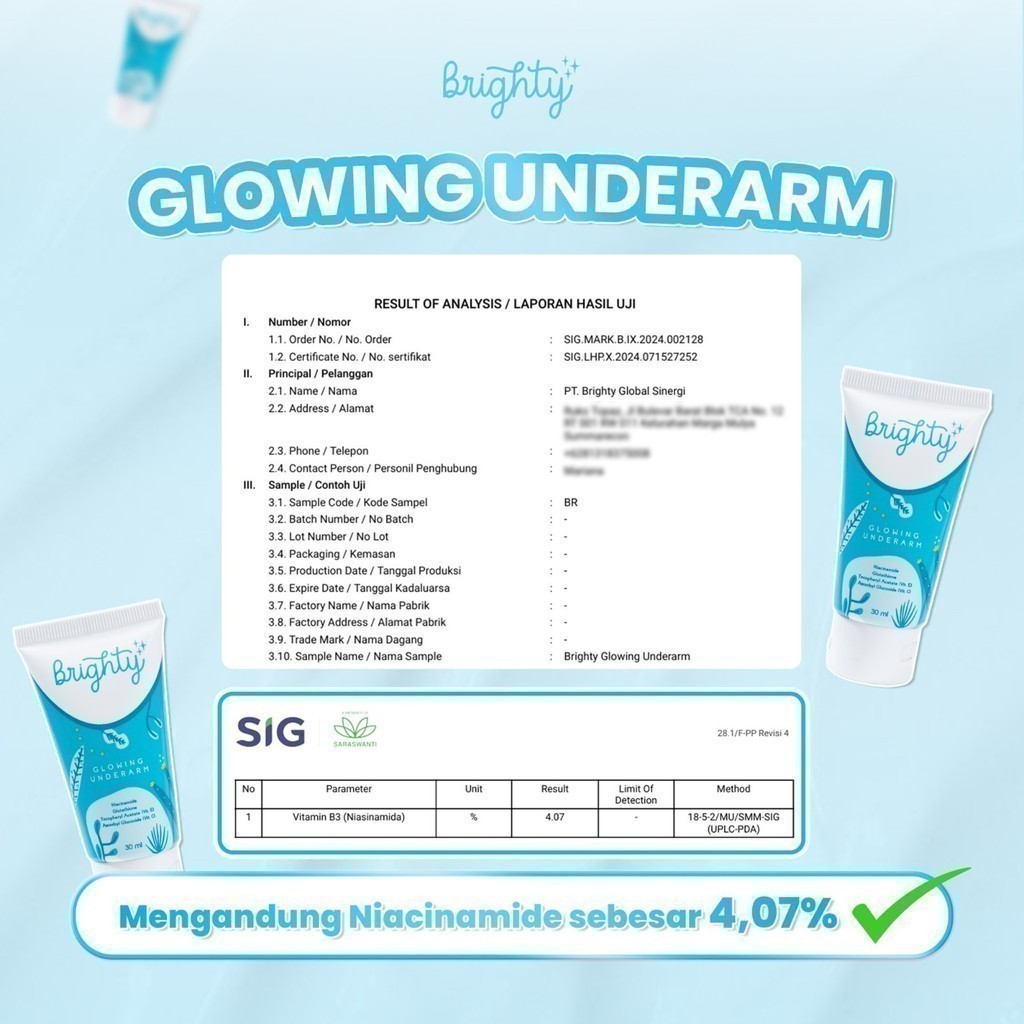 Brighty Glowing Underarm 2 Pcs Mencerahkan Memutihkan Pencerah Ketiak Selangkangan Lipatan Hitam Niacinamide Glutathione Vitamin E Dan Vitamin C