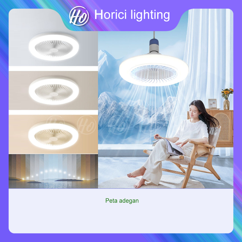 HORICI Lampu Kipas Angin AC E27 3050Watt Lampu LED Kipas Angin Gantung Plafon + Remote 2 in 1