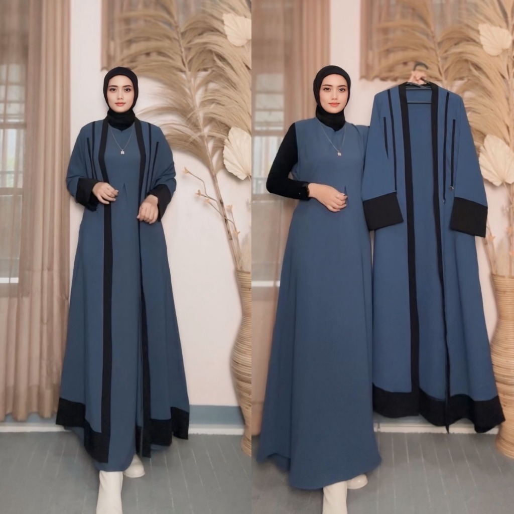 Arumi Set Abaya Outer Dan Inner Premium Muslim Gamis Wanita Lebaran Dewasa Remaja Lembut Basic Turki