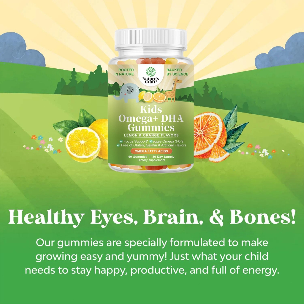 Omega + Dha For Kids Gummies Zinc Probiotics For Brain Development Boosts Immune Omega + Dha Untuk Anak-Anak Permen Kare