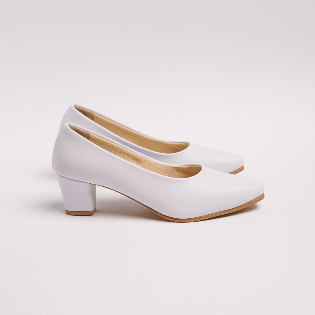 Emorishe - Sepatu Kantor Wanita Sepatu Hak 5 Cm Big Size Jumbo Putih Doff