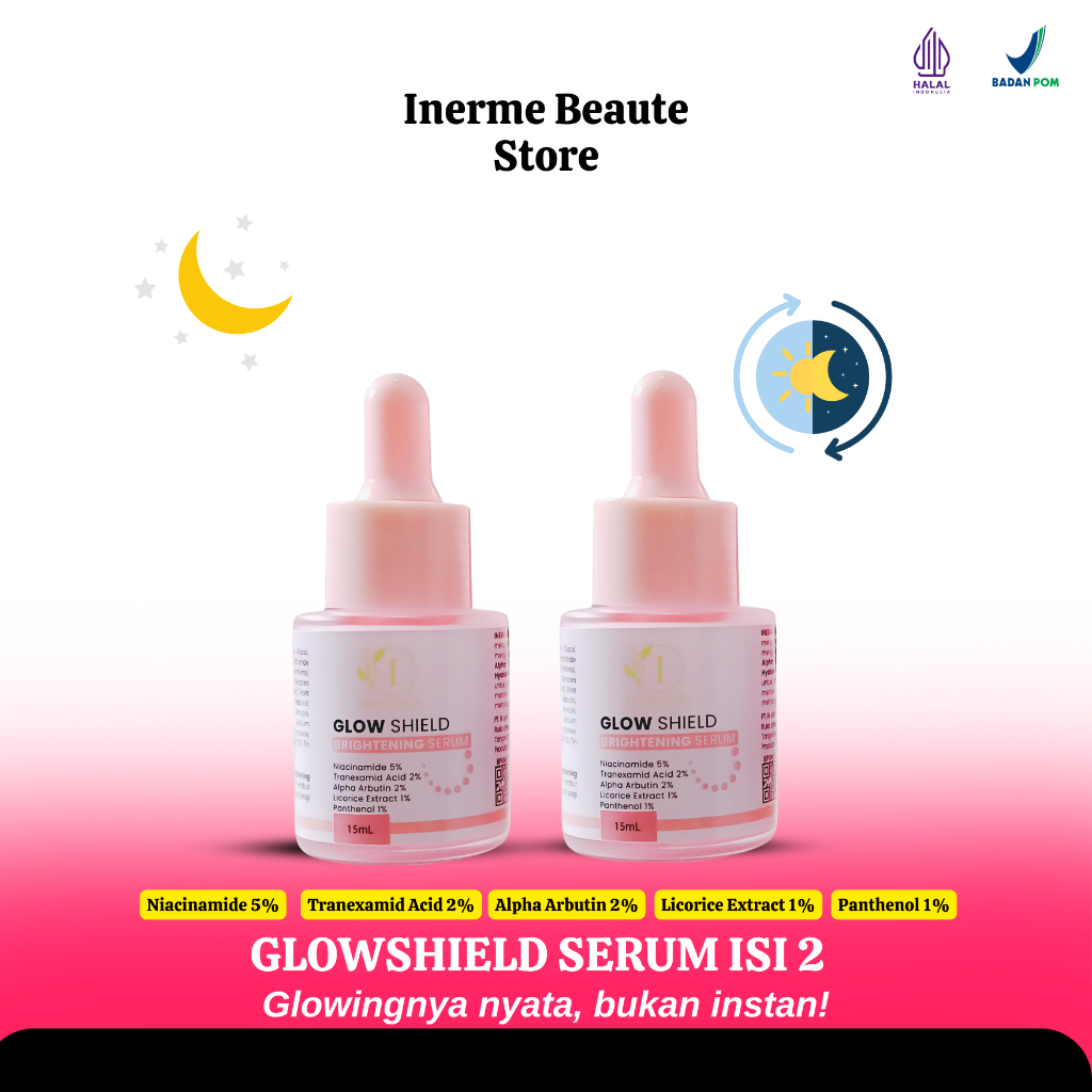 Inerme Beaute Paket isi 2 Glowshield Brightening Serum Glowing