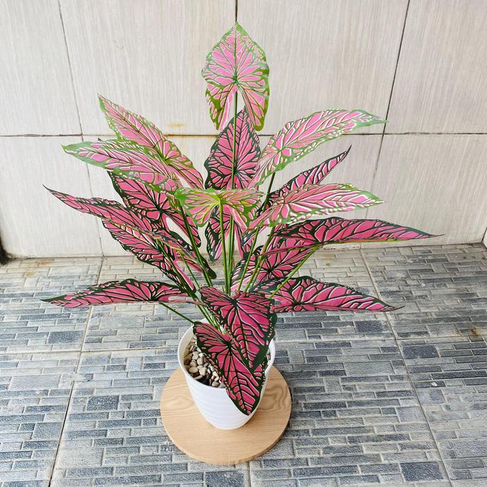 TANAMAN HIAS DAUN KELADI PHILODENDRON ARTIFICIAL PLASTIK PALSU DENGAN POT 18 CABANG BUNGA DEKORASI RUMAH AESTHETIC THDTK