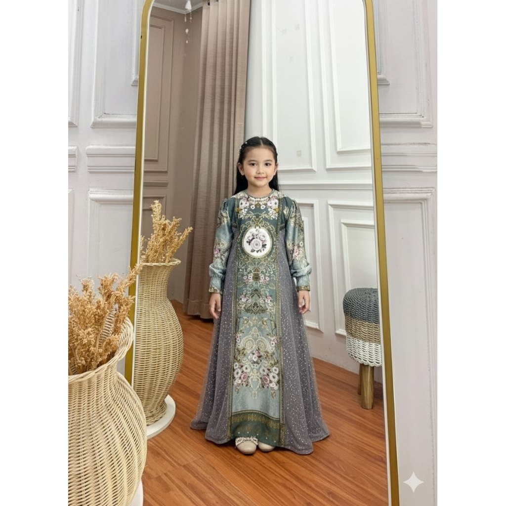 Gamis Salma Anak Dress Silk Motif Sultan mix Twill Gamis Terbaru Trendy Baju Muslim