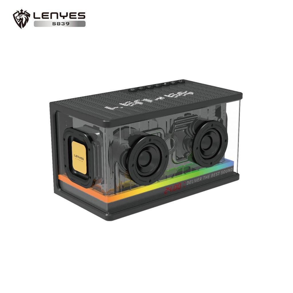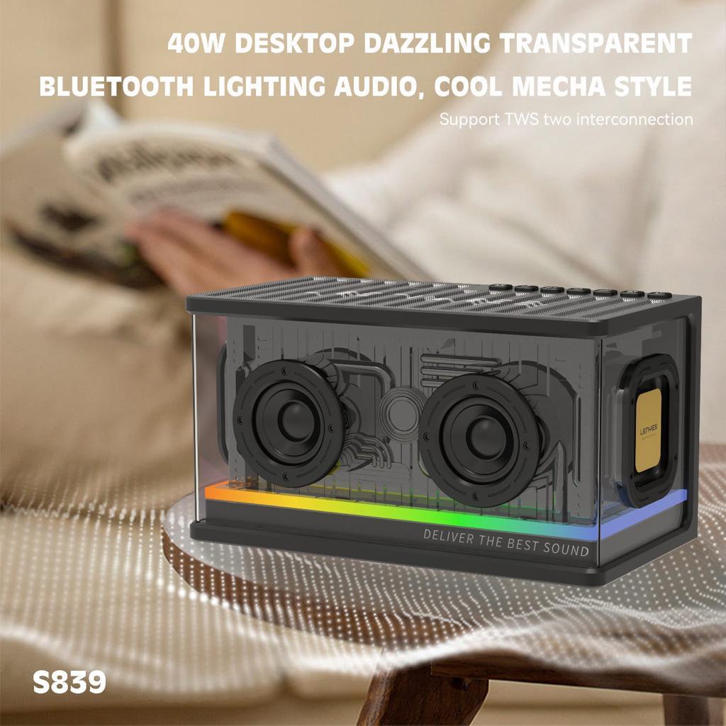 LENYES SPEAKER BLUETOOTH TRANSPARAN RGB TWS V5.2 80WATT POWERFULL BASS HIFI STEREO S839