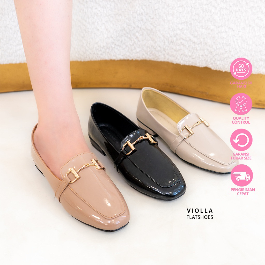 Bellashoesjkt Violla Flatshoes Kantor Glossy Wanita Daily