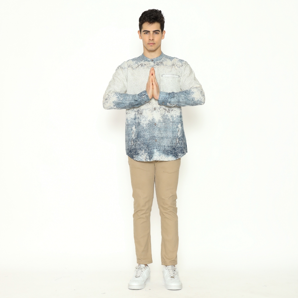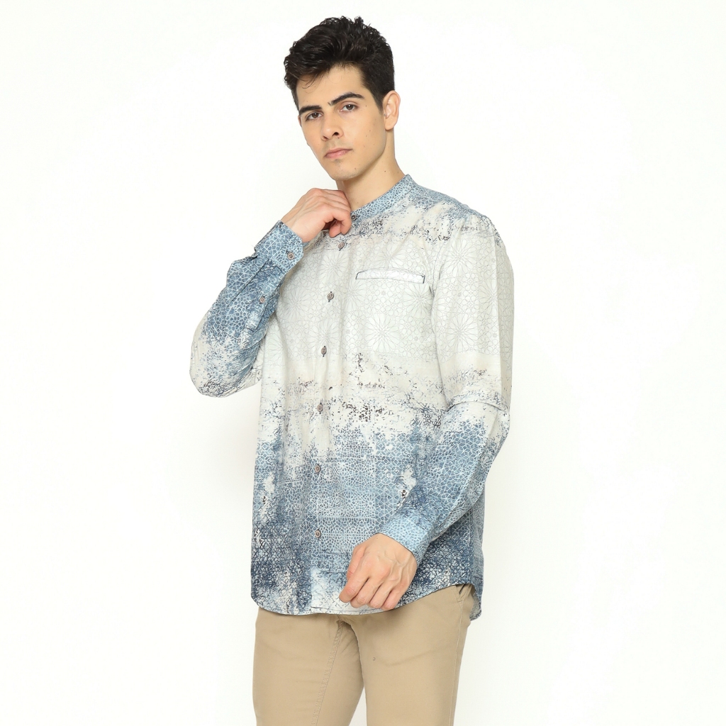 AMK Kemeja Koko Pria Printing Lengan Panjang KK NIZAM L/S NAVY BLUE