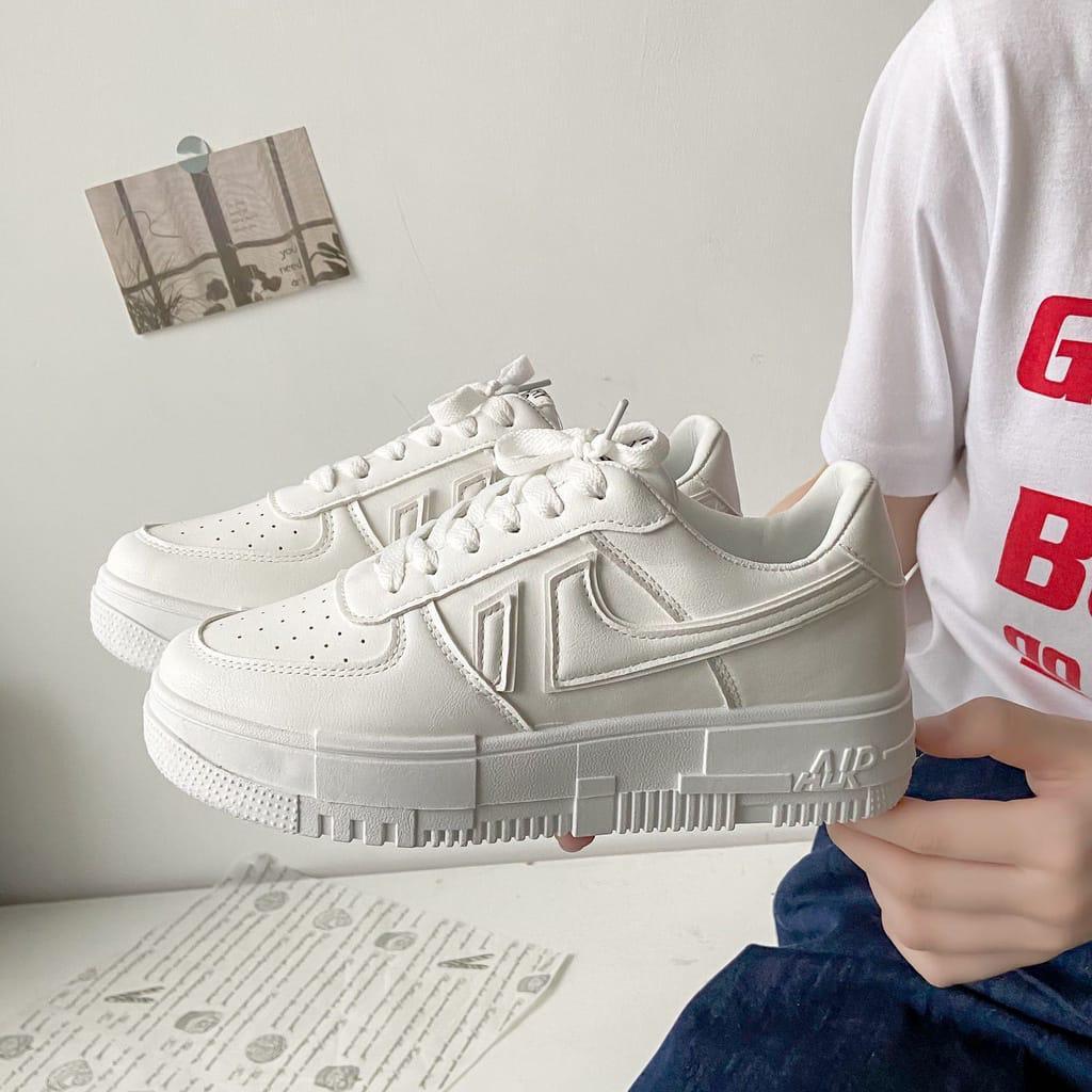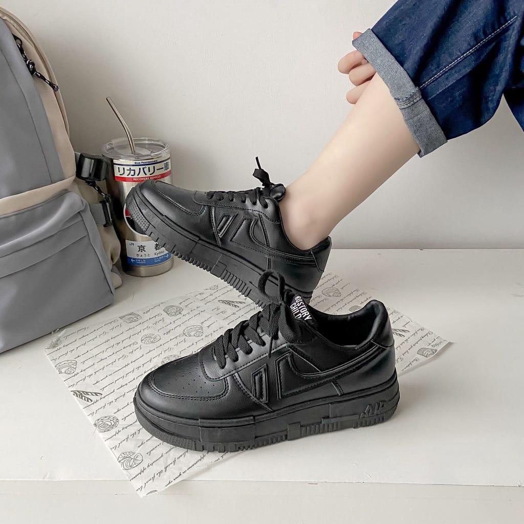 Sepatu Sekolah Wanita Hitam Polos Korea Sepatu Kasual Kuliah Wanita Putih Polos Series