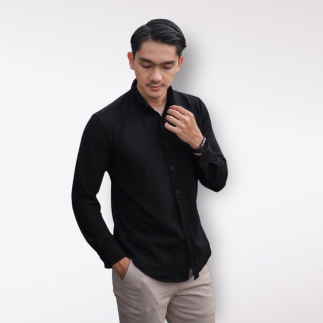 ALJOSA Kemeja Pria Polos Hitam Lengan Panjang Kerja Kantor