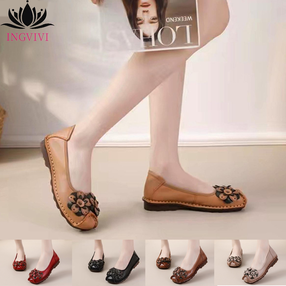 Sepatu Wanita Ingvivi Flat Melati Kulit Sapi Asli Empuk Dan Lentur Shoes - Tinggi 3 Cm (Size 36-41)
