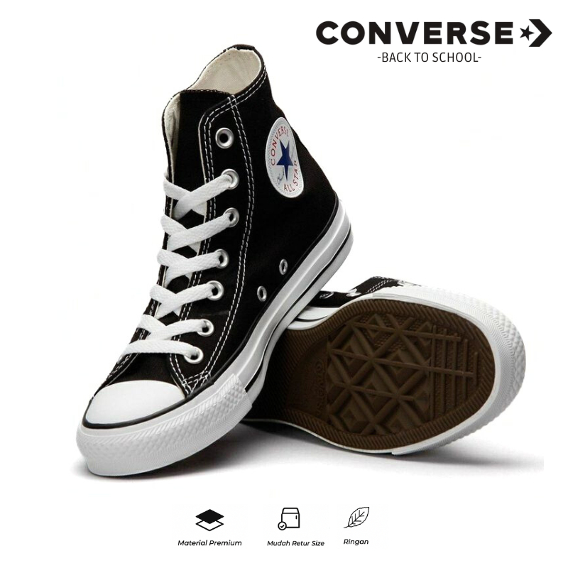 TERBARU Sepatu Sekolah SD SMP SMA Allstar Hitam Garis Putih UKURAN 36-43 Converse High Pria Wanita Canvas 70s Original M