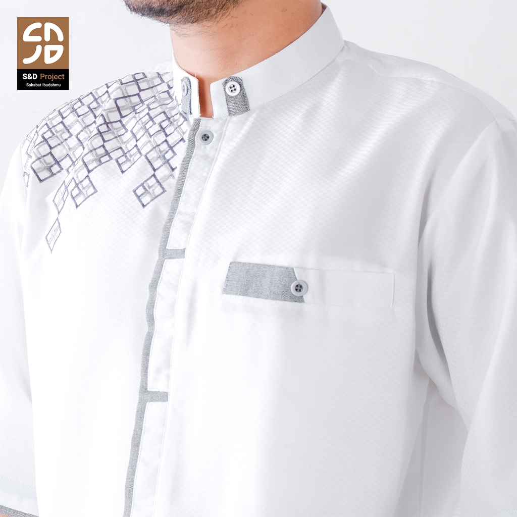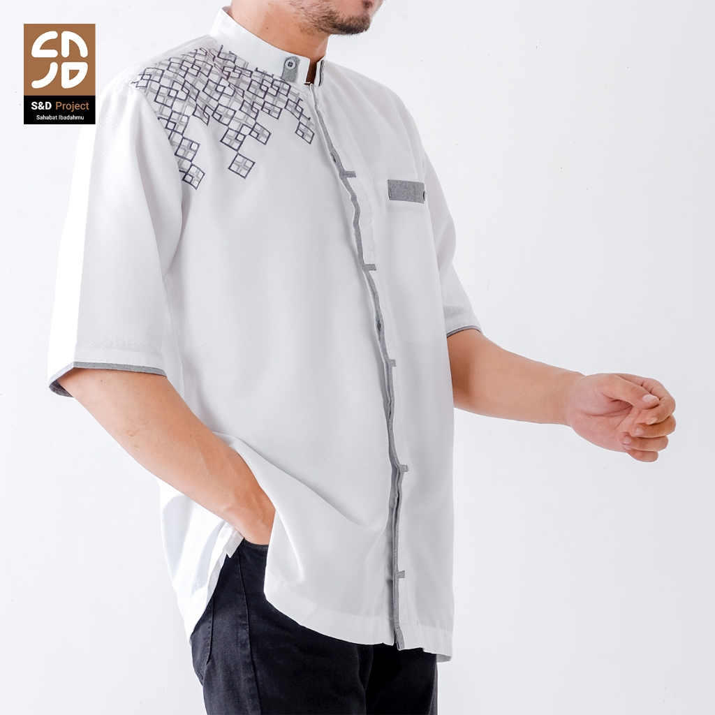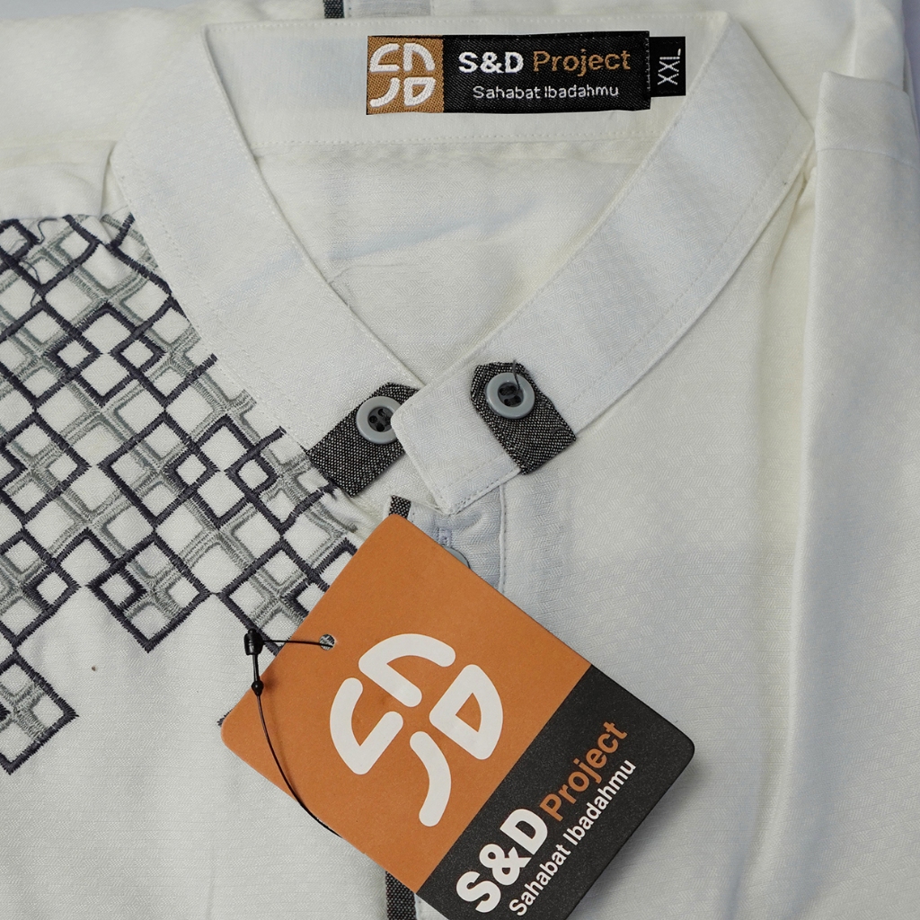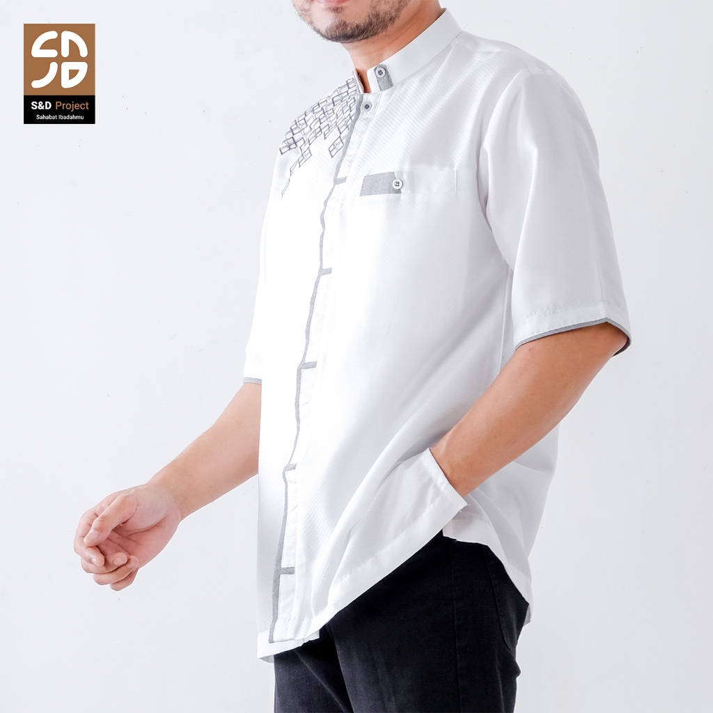 S&D PROJECT Koko Muslim Seri 24 Bordir Polikatun Putih Tulang Jumbo S-4XL Pria Dewasa Lengan Pendek