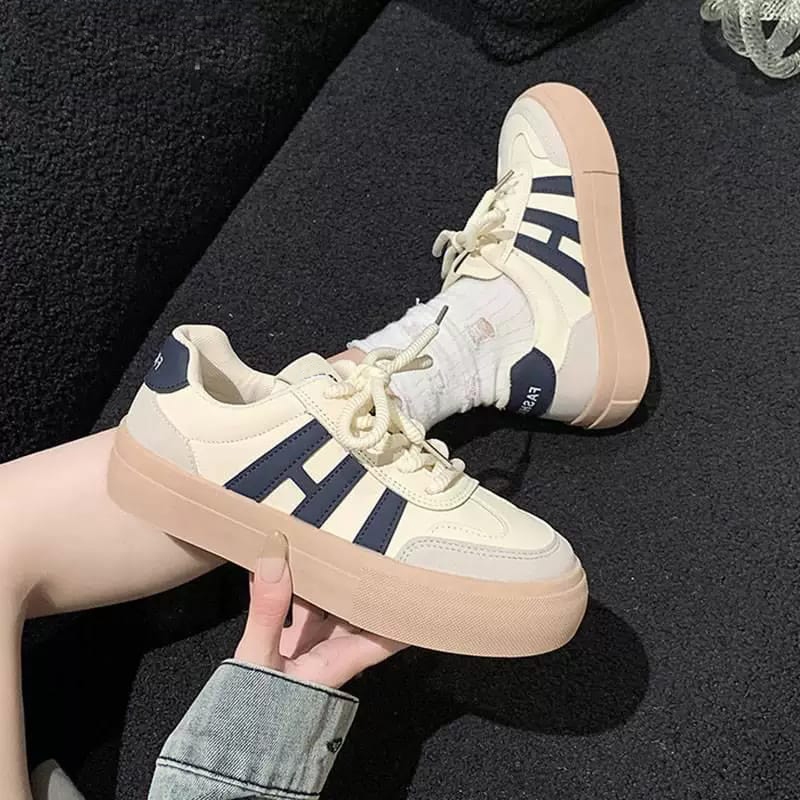 Sepatu Sneakers Wanita Kasual Karet Putih Trendy 36-41