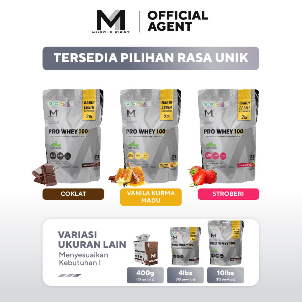 Muscle First Pro Whey 100 2 Lbs Suplemen Whey Protein Concentrate 900Gr 900 Gram - M1 Prowhey