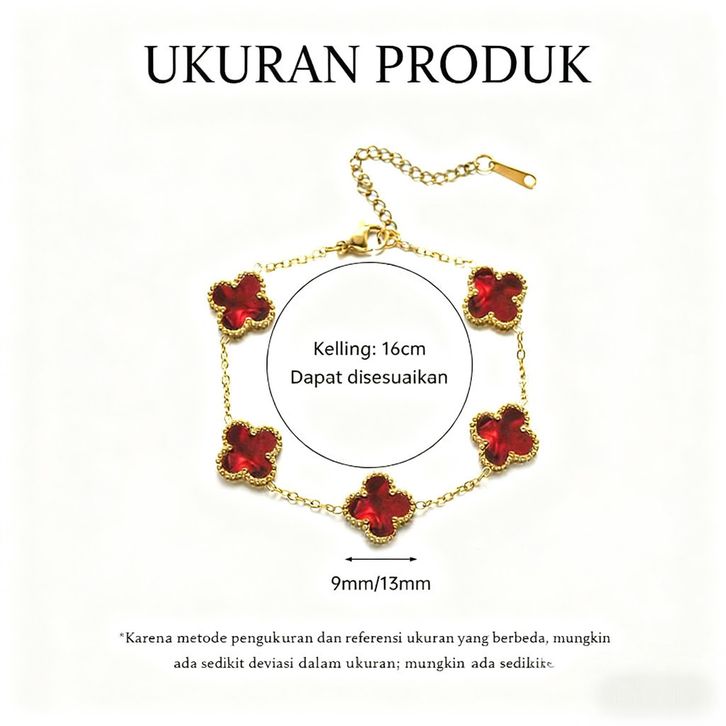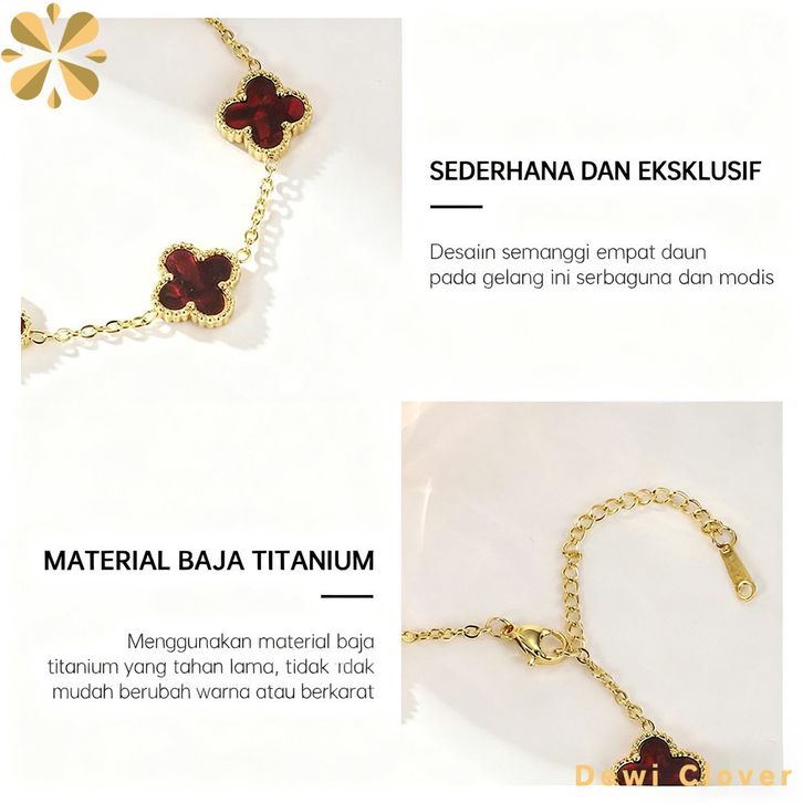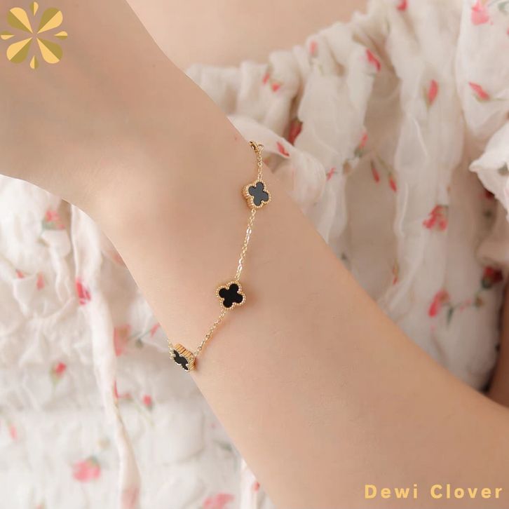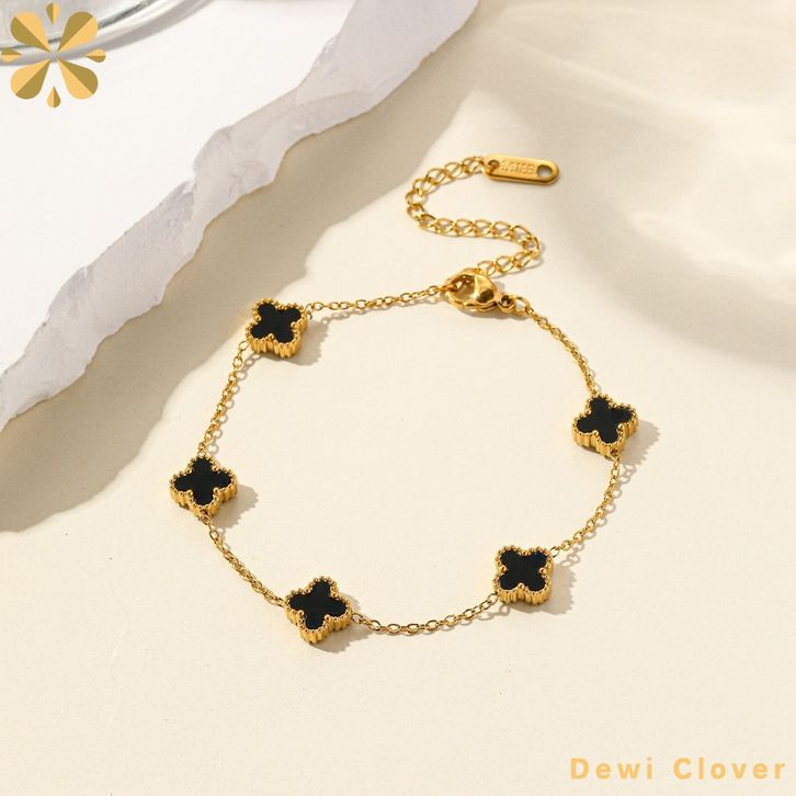 Gelang Wanita Clover Hitam Gold Plated Anti Karat Korea Fashion Terbaru