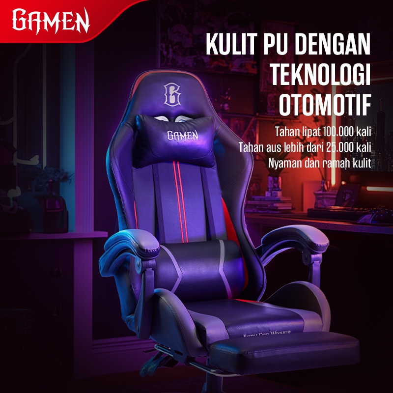 GAMEN Kursi Gaming Premium Dengan Sandaran Kaki Rebahan Cosmix II Black Kursi Gaming Rebahan Recliner Kursi Gaming Origi
