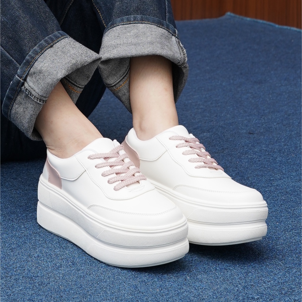 Elira Sepatu Sneakers Platform Wanita Gana White Pink Tinggi Casual Shoes Women