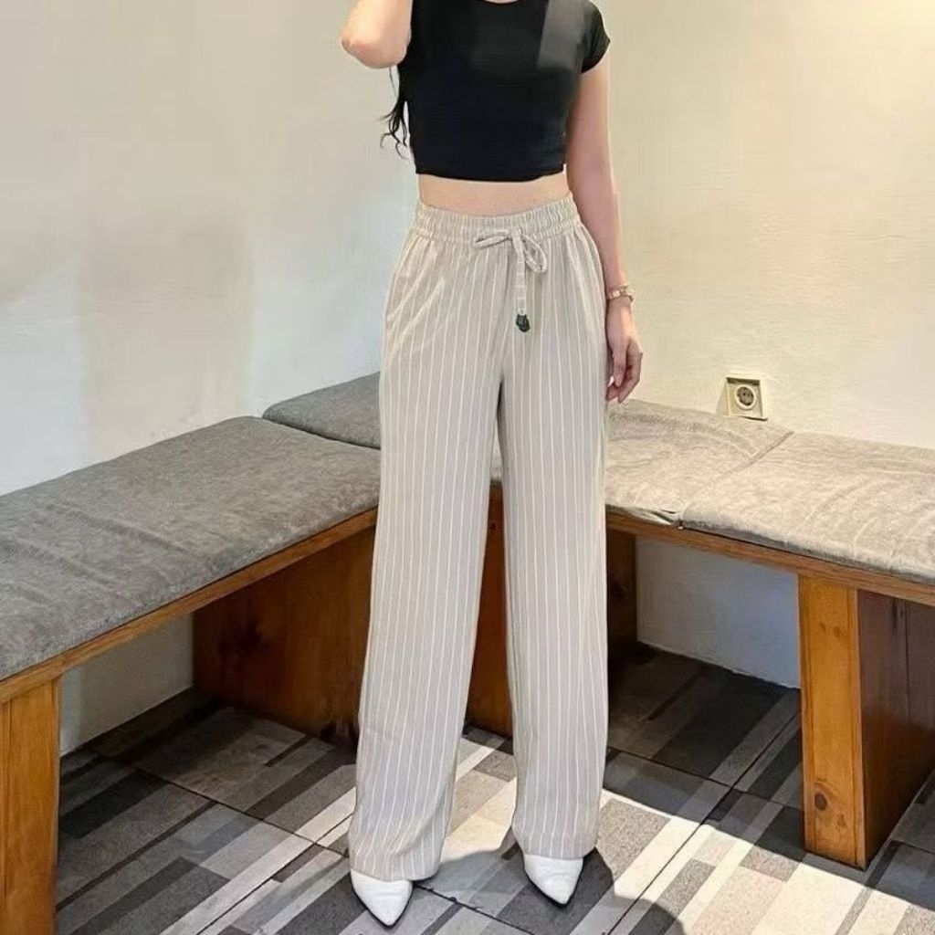 Everday Stripe Pants Bangkok - Celana Panjang Wanita Baggy Kantor Kuliah Motif Garis Kulot Pinstripe