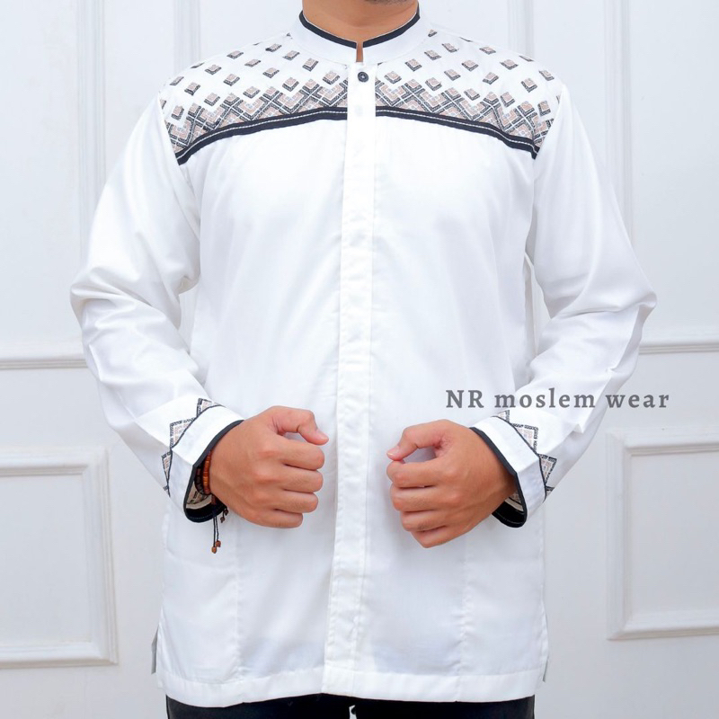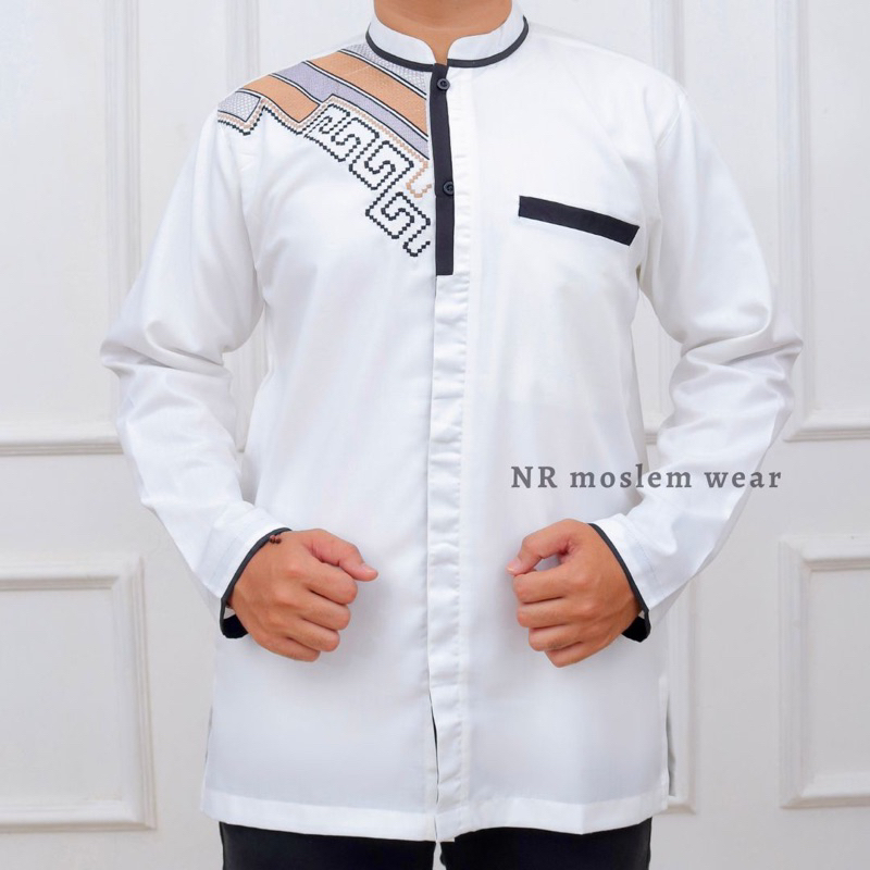 BAJU KOKO PUTIH DEWASA TANGAN PANJANG / KOKO ARRAHMAN PANJANG / BAJU KOKO KATUN ADEM kode ( ARK )