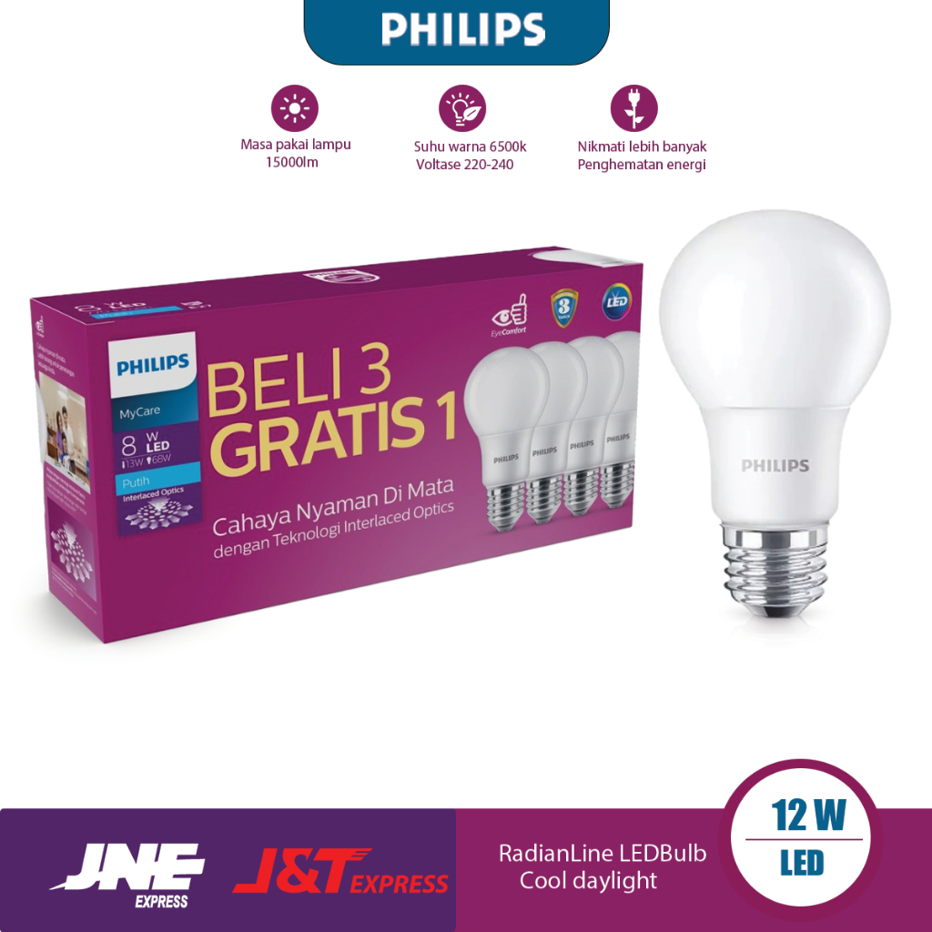 【Beli 3 gratis 1】Lampu LED Philip Paket12W 14.5 Watt Multipack Lampu led rumah Led Bulb 6500K Putih