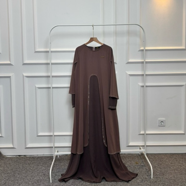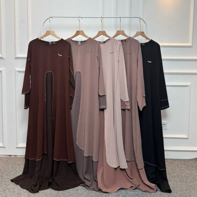 DFM Madeena Abaya Exclusive Dress Series Tanpa Hijab Bahan Sabrina Anti UV Mix Ceruty Gamis Wanita Terbaru Lebaran 2026
